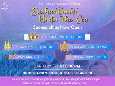 On behalf of Sea Turtle Inc., we are thrilled to invite you to our 2nd Annual Gala, ‘Enchantment Under the Sea,’ on Saturday, January 31, 2026, at the Hilton Garden Inn on South Padre Island, TX. After a sold-out inaugural event, we’re back for year two – bigger, brighter, and more unforgettable than ever!